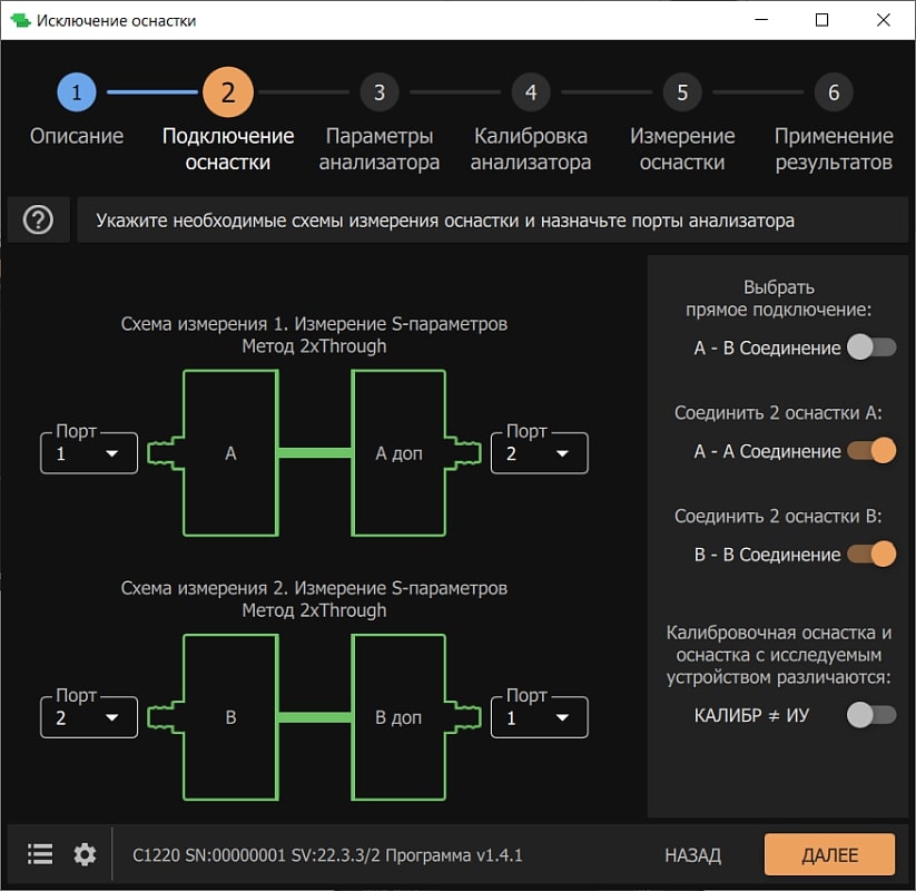 В стандартной комплектации векторные анализаторы цепей позволяют проводить измерения только в коаксиальном тракте. Для измерения устройств с другими соединителями необходимо использовать специальную оснастку, которая уникальна для каждого случая. При этом она будет влиять на результат измерений, внося дополнительную погрешность.